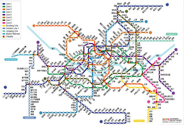 南韓首爾市捷運總圖: (是不是粉複雜呢 ^^ 好好奇喔! 列車怎麼不會相撞呢! )