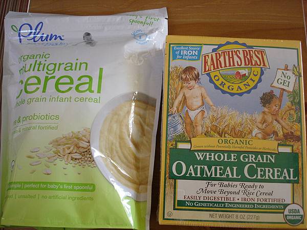 除了開始嚐蔬菜食物外, 我還額外買了燕麥和綜合麥片給她吃, 讓她換換口味, 如下圖