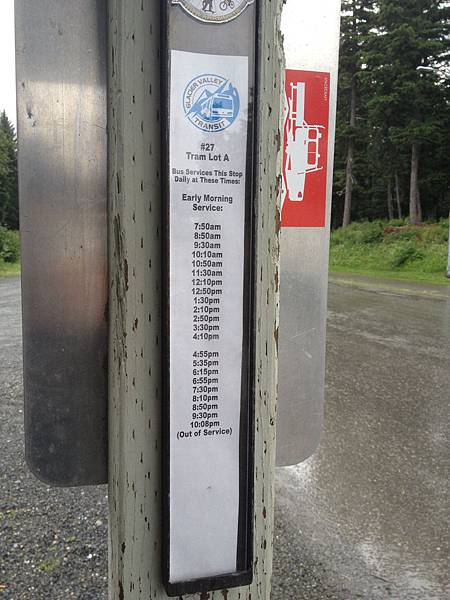 圖說: 抵達目的地後發現, 我們必須將車停另一頭的停車場中, 等待接駁, 瞧瞧這接駁時間, 每40分鐘一班, 好時間剛好, 只等五分鐘而已