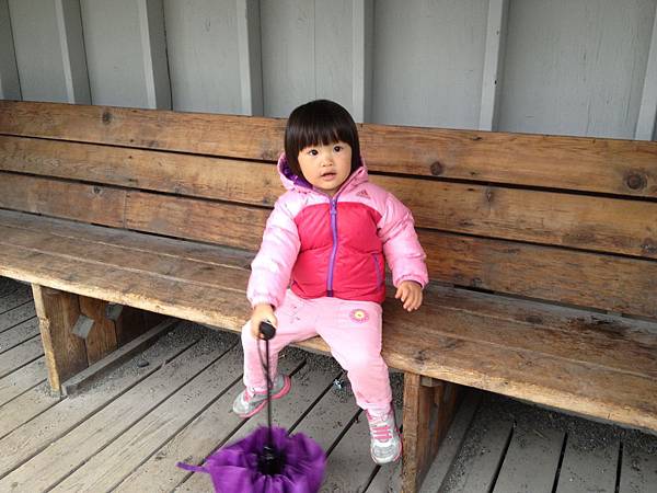 圖說: 小恩坐在公車站中, 繼續玩弄她的雨傘
