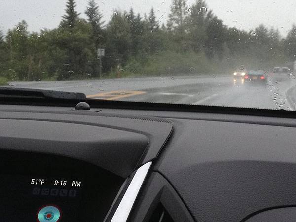圖說: 又要開回安哥拉治了, 看看時間, 晚上9:16, 氣溫51, 外頭下著雨, 天空還是亮的, 這就是阿拉斯加 ^^