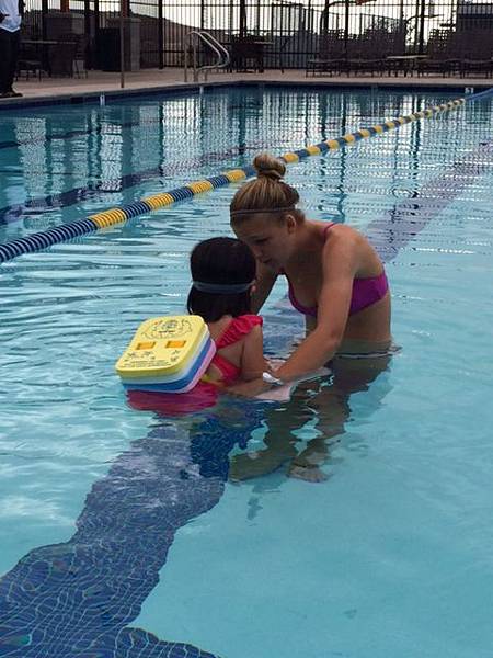 心得: 喜歡老美老師, 很正面很鼓勵, 女兒沒壓力, 也很開心, 現在已經會抬頭自由式游半場了, 還有海馬漂浮, 決定每年五月都回來學, 到九月開學