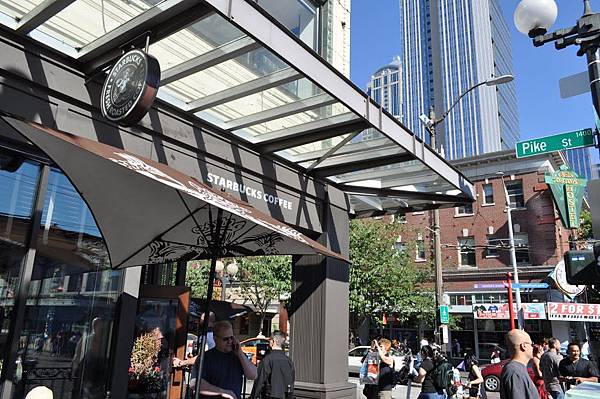 來到口香糖牆和第一家星巴克, 買了咖啡杯