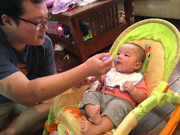 剛滿四個月後, 開始嘗試米糊